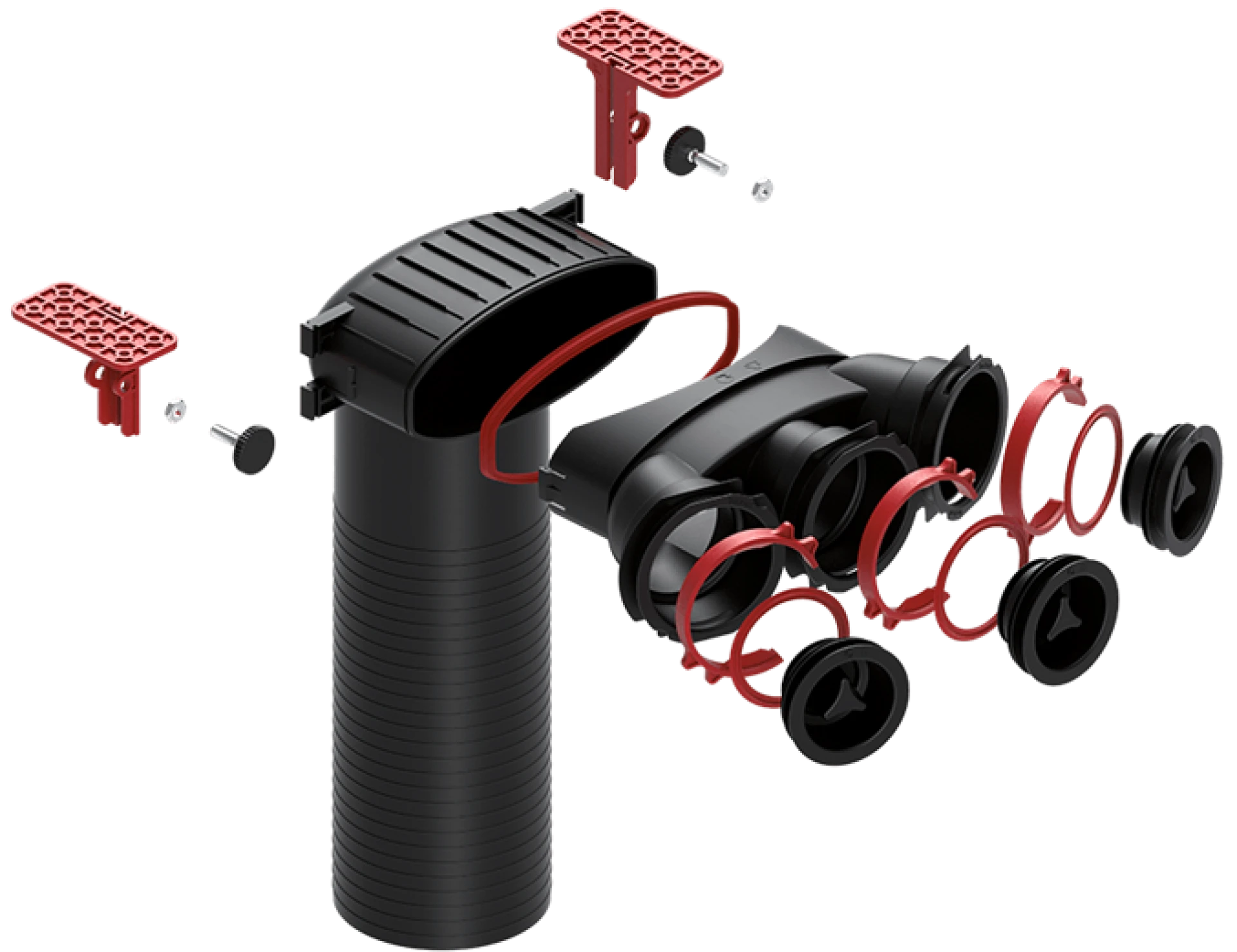 Plenumul permite conectarea a trei tuburi de 75 mm la un anemostat de aer de evacuare aer viciat sau aport aer proaspat de 125 mm. Fiecare conexiune neutilizata trebuie acoperita cu un dop de 75 mm (furnizat de producator). Componentele sistemului sunt realizate din material plastic extrem