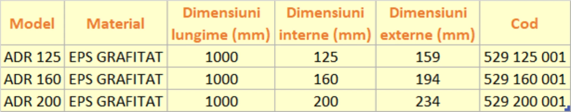 Tubulatura de 1 metru lungime, izolata, utilizata pentru a transfera debite mari de aer intre admisia de aer si evacuarea de evacuare si centrala de ventilatie si intre centrala de ventilatie si distribuitoarele sistemului de distributie a aerului. Sunt fabricate din material usor si durabil, cu proprietati izolante - polistiren expandat (EPS), cu adaos de grafit, rezistent biologic la fungi, mucegai si bacterii. Disponibil in 3 diametre – 125 , 160 si 200 mm. Tuburile cu lungimea de 1 m sunt realizate in intregime dintr-un singur element ceea ce inseamna o etanseitate mai mare si un risc mai mic de deteriorare. Instalare usoara datorita marcajelor plasate la fiecare 5 cm, care faciliteaza taierea tevii la lungimea necesara. Grosimea peretelui (17 mm) va permite sa taiati teava cu un cutit. Perete interior neted - rezistenta scazuta la trecerea aerului. Coeficient de conductivitate termica scazut - λ = 0,029 W / mK. Compatibil 100% cu sistemul si componentele de ventilatie standard - dimensiuni interne in conformitate cu standardul PN-EN 1506: 2007